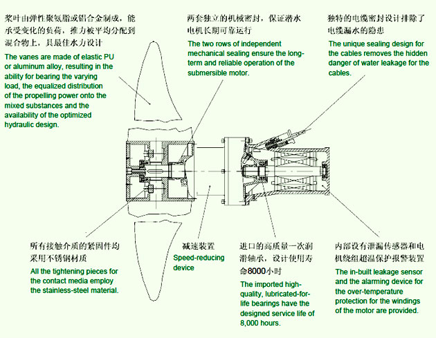 潛水攪拌機必(bì)須完全潛入(rù)水中工作,不能在易燃易爆和強腐蝕性及高溫的環境中工作。針對特殊環境下的要求,我公司可為用戶提供特殊設計。