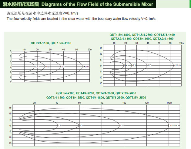 潛水攪拌機的選型是一項比較複雜的工作,選型方案的正確與(yǔ)否直接影響到設備的正常使用,作為(wéi)選型的原則就是要讓攪拌機在適合的容積裏發揮充分的攪拌功能,這(zhè)個標準一般(bān)可用流(liú)速來確定(dìng)。根據汙水處理廠的不同工藝要求,攪拌(bàn)機選型(xíng)的佳流(liú)速應保證在0.15~0.3m/s之間,如果低於0.15m/s的流速則達不到推流攪拌的效(xiào)果,如果(guǒ)超過(guò)0.3m/s的流速則會影響(xiǎng)工藝效果且(qiě)造成浪費。所以在選型前,首先要確定潛水攪拌機運用在什麽場所,如:汙水池、汙泥池還是生化池;其次是介質參數,如:懸浮物含(hán)量、溫度、PH值等;還有水池的形(xíng)狀,水深甚至安裝方(fāng)式(shì)等都將對選(xuǎn)型產生影響(xiǎng),同(tóng)時(shí)還(hái)應考慮(lǜ)到節能因素(sù),因為這將會影響到(dào)用戶(hù)今後的運行成本。可參考下麵的潛水攪拌機流場圖。