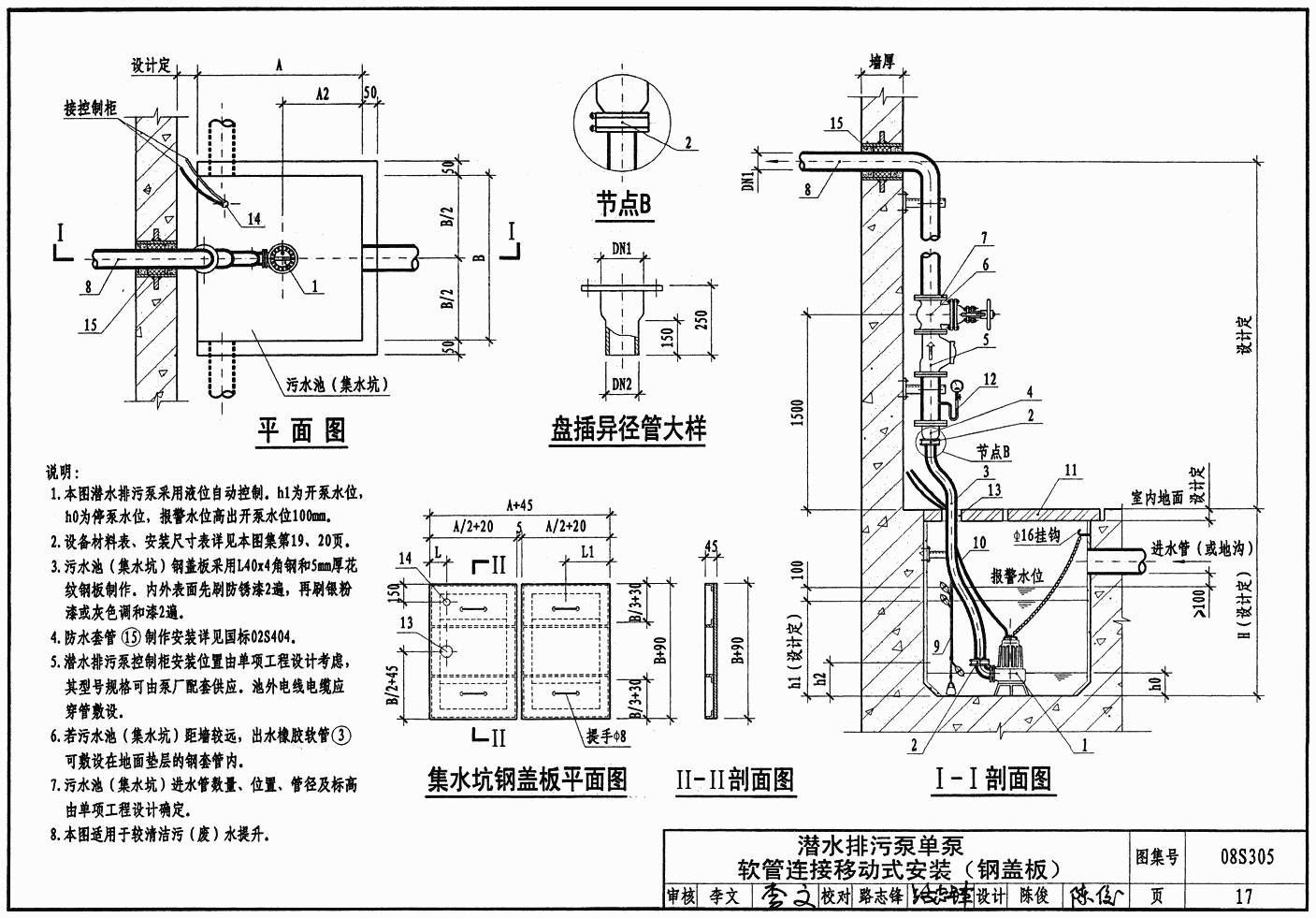 潛(qián)水排汙泵單泵軟管連(lián)接移動式安裝示意(yì)圖
