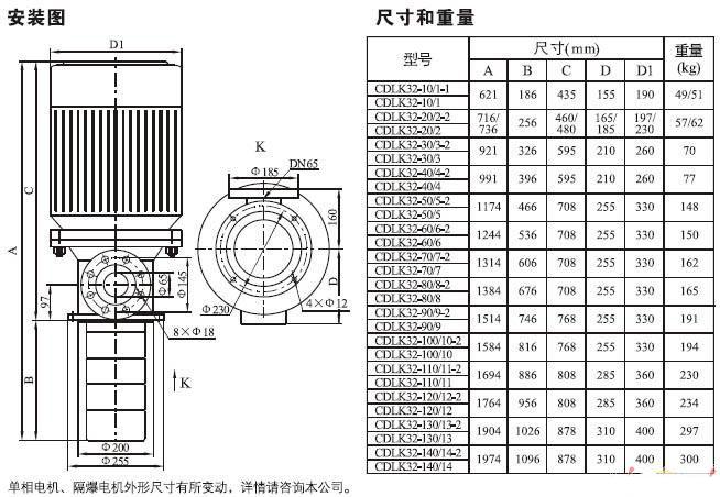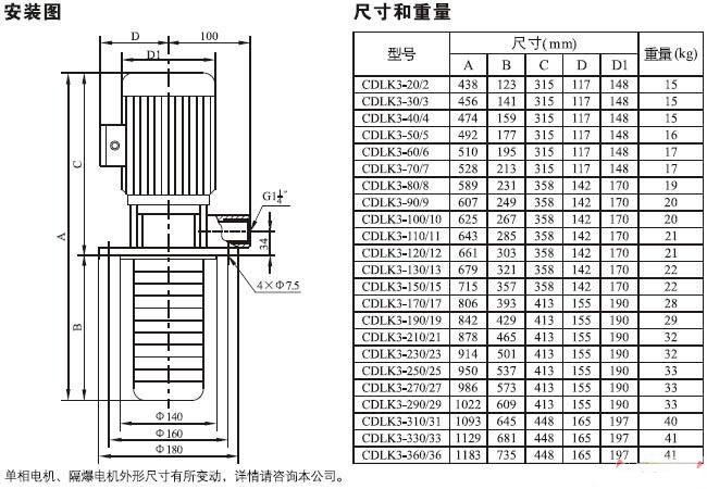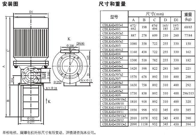 CDLK/CDLKF浸入式多級離心泵安裝尺寸