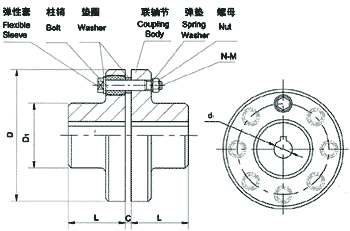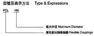 Summary Flexible Couplings Model FCLis widely used for its compact designing,easy installation,convenient maintenance,small size and light weight.As long as the relative displacement between shafts is kept within the specified tolerance,B couplings will operate the best function and have a longer working life.Thus it is greatly demanded in medium and minor power transmission systems driven by moters,such as speed reducers,hoists,compressos,conveyers,spinning and weaving machines and ball mills. TKPermittable relative displacement: Radial displacement:0.2~0.6mm Angle displacement:0°30′~1°30′ 外形尺寸參數 Size chart & Parameter 概 述(shù) FCL型彈性套柱銷(xiāo)聯軸器的特點是結構(gòu)簡單,安(ān)裝方(fāng)便,更換容易,尺寸小,重量輕,因而得到廣泛使用,如若安(ān)裝調整後能保持兩軸相對(duì)位移量在規定的範圍內(nèi),則聯軸器會有滿意的使(shǐ)用性能和較長的(de)工作壽命(mìng)。因此能廣泛(fàn)用於載荷不(bú)大,由(yóu)電動機驅動的各種中、小(xiǎo)功率傳動軸係中,如(rú)減速機、起重機、壓縮機、輸送機、紡織機、卷揚機、球磨機(jī)等。 彈(dàn)性套柱銷聯軸器的許用相對位移: 徑向位移:0.2~0.6mm 角位移:0°30′~1°30′