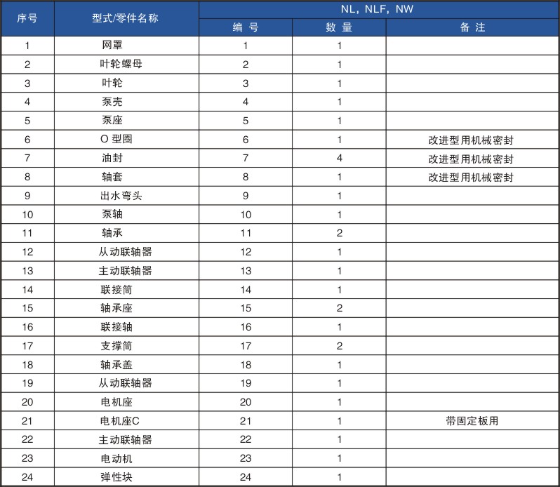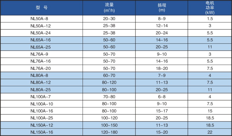 NL型80A-25汙水泥漿泵等(děng)性能(néng)參數及零件目錄