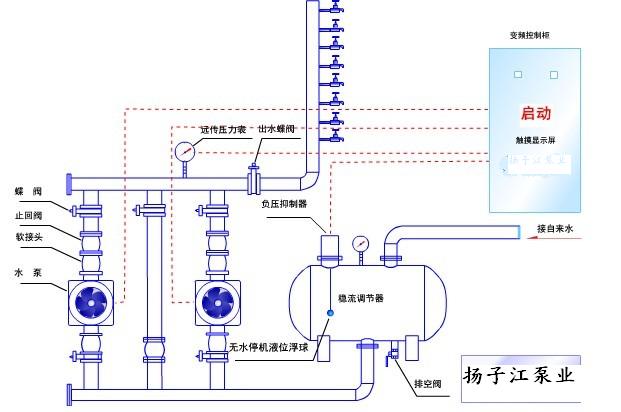 無負壓變頻恒(héng)壓供水(shuǐ)設備是一種新型的清潔衛生、高效節能的供水設備,也被業(yè)界稱為管網疊壓(yā)供水設備。該設備為全封(fēng)閉式結構,不需要建造任何形式的水池,避免了(le)供水(shuǐ)二次汙染。直接將食品衛(wèi)生等級的不鏽鋼穩(wěn)流調節罐作為進水儲水緩衝裝置直(zhí)接與自來水管道相連(lián),充分利用自來(lái)水管網原有壓力能源,在同樣供水需求的情況下,無負壓變頻供水(shuǐ)可選擇功率較小的水泵及控製設(shè)備。同時在夜間小流量用水情況下利用市(shì)政供水水壓直接(jiē)供水而無需啟(qǐ)動水泵(bèng)。相比(bǐ)傳統帶水池的供水設備,該設備節約了大量的電能(néng)和設備投資(zī),其節能(néng)效果可高達50%以上。運行過程中,穩流調節罐配備的真空消除器(qì)可自動消除設備運(yùn)行過(guò)程中對管網所產生的負壓,保證了正常供水的同時設備(bèi)不會對市政管網其他用戶造成影響。無負壓變頻供水(shuǐ)是目前高(gāo)效節能的供水設備,特別適(shì)合(hé)城鎮自(zì)來供應較為(wéi)穩定和充足的場合使用。