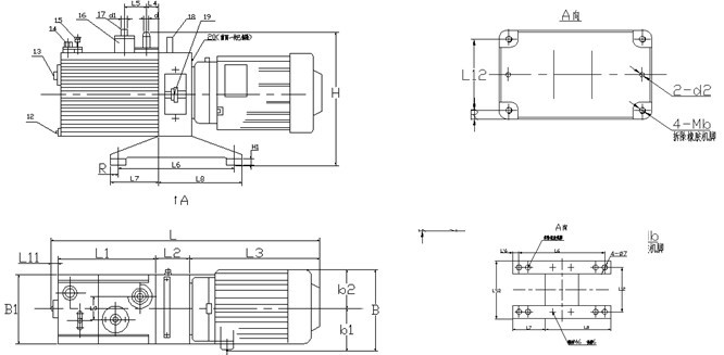 | 五、2XZ型旋片式真空泵的安裝(zhuāng)尺寸表: |