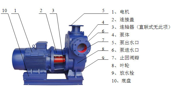 ZSL強自吸.高揚(yáng)程.大流量.直聯式雙吸自吸泵的水泵結構圖
