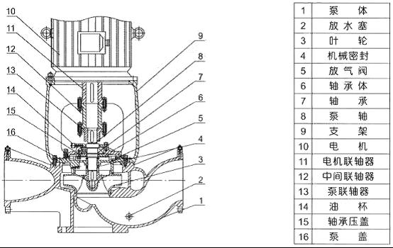 ISGB便拆立式管道離心(xīn)泵結構圖:
