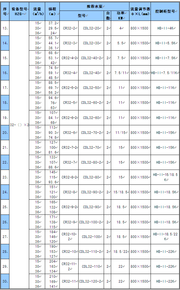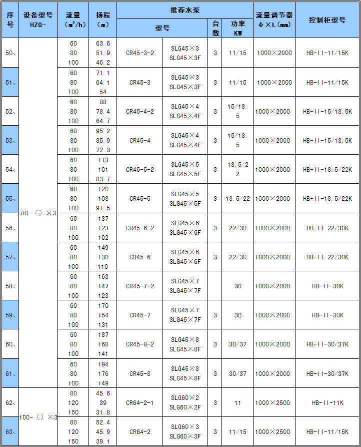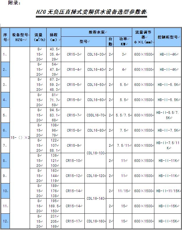 “HZG無負壓直接(jiē)式變頻供水設備”主要指標如下: