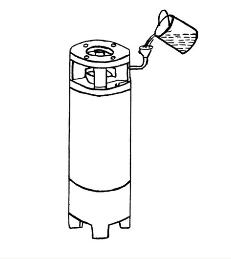 灌水方(fāng)法說明 (務必(bì)灌滿清水(shuǐ),否則不(bú)準使用(yòng)) (嚴禁(jìn)無水空轉試機) 電泵放入水井(jǐng)或其它水源之前 ,必須用潔淨的清水(不含砂)灌(guàn)滿電機。灌水時、電機(jī)應豎立(lì)放(fàng)置,不可傾斜,首先擰下聯接段上(shàng)兩個注水螺釘(dìng),按插圖(tú)所示,將錐形漏鬥(dòu)或水管插入聯接筋板上的一個孔中先進行灌水衝洗,另一孔作(zuò)排氣之用。灌滿水後,打開底部放(fàng)水(shuǐ)螺栓,將水放掉衝洗內腔,直至放(fàng)出的水清潔。然後,擰緊底部放水螺栓,正式(shì)灌水,灌滿水後,要使電機(jī)靜止30分鍾左右,讓繞組中(zhōng)的氣泡(pào)充分逸出,(輕輕搖動(dòng)電機可加速氣泡逸出(chū)),後再加少量水將電機(jī)灌滿,擰(nǐng)入筋板上兩個注水螺釘緊固。
