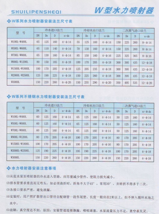 水力噴射器進出口法蘭尺寸