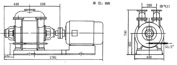 一、SK-12水環式真空泵(bèng)的外形(xíng)尺寸: