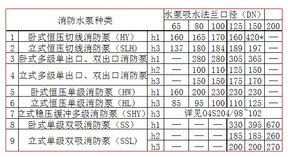 該規格消防泵放氣孔(kǒng)在出(chū)水(shuǐ)法(fǎ)蘭部(bù)位,距吸水口中心高度(h1)為300~420mm.