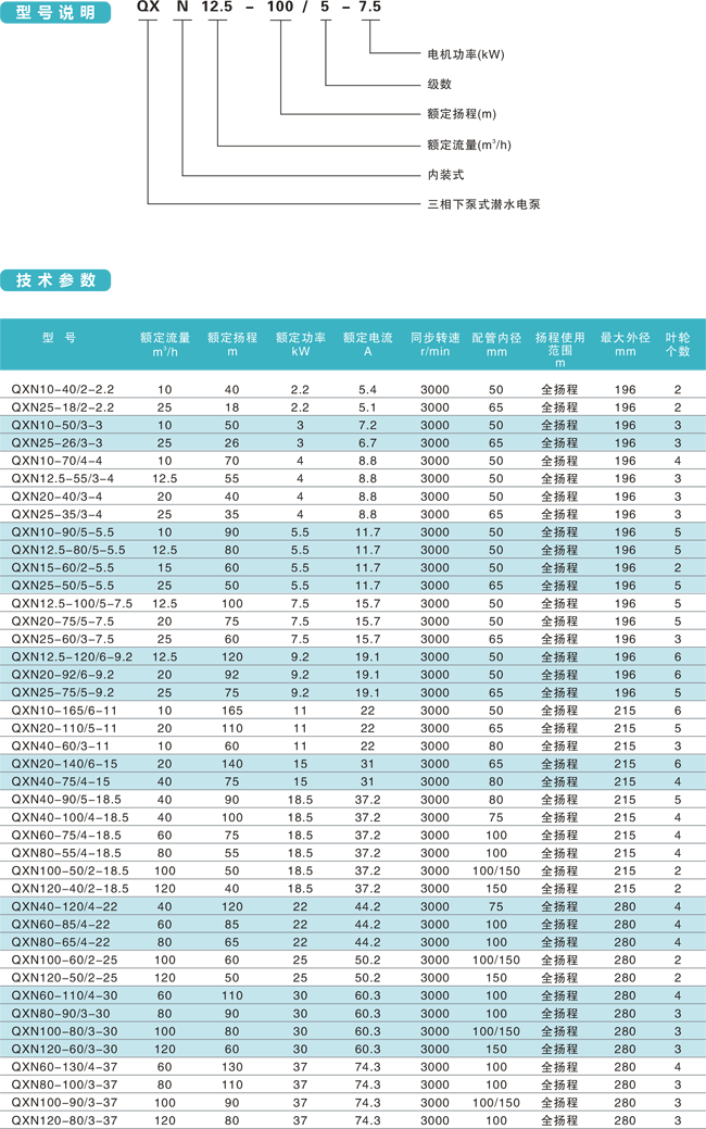 全(quán)揚程內裝式潛水電泵使用條件及(jí)性能參數