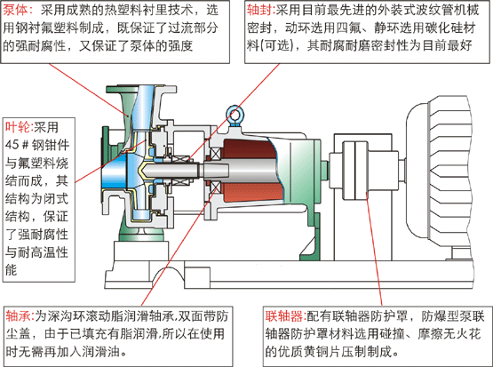 四、氟塑料離心(xīn)泵結構與材料: