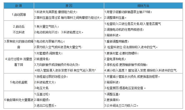 七、I-1B係列濃漿泵故障原因及排除方法