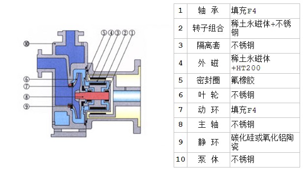 5、內、外轉子:內、外轉子配套使用,共同形成磁力泵的磁傳動部件。
