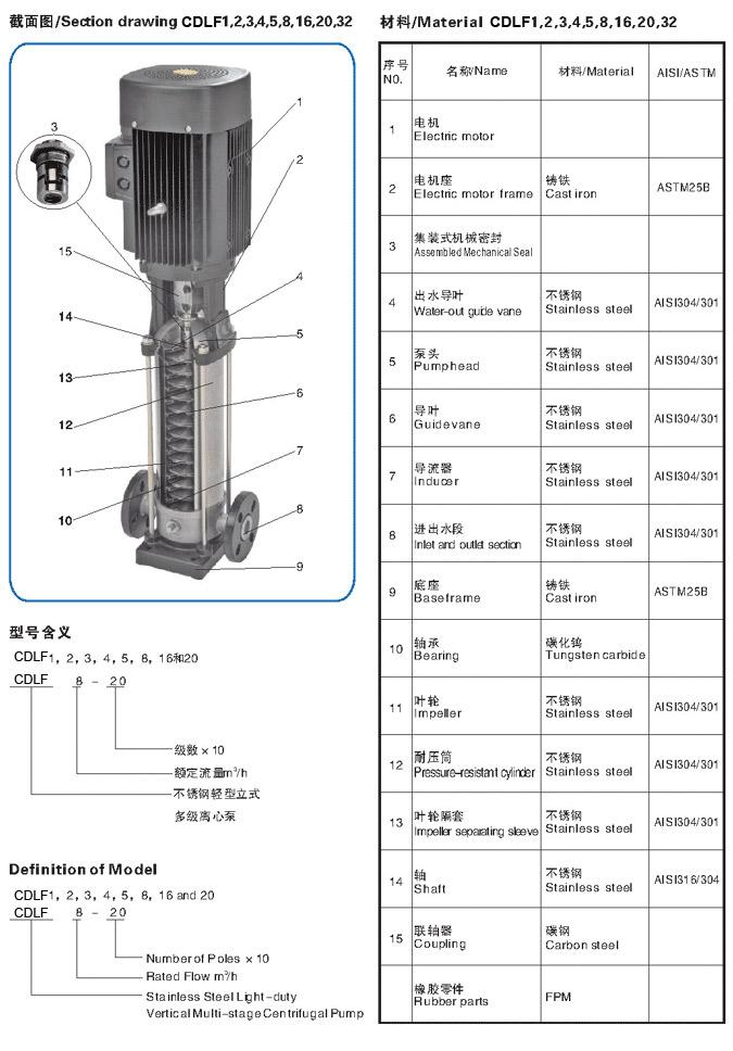 CDLF輕型不鏽鋼立式衝壓多級泵零件拆解實物圖