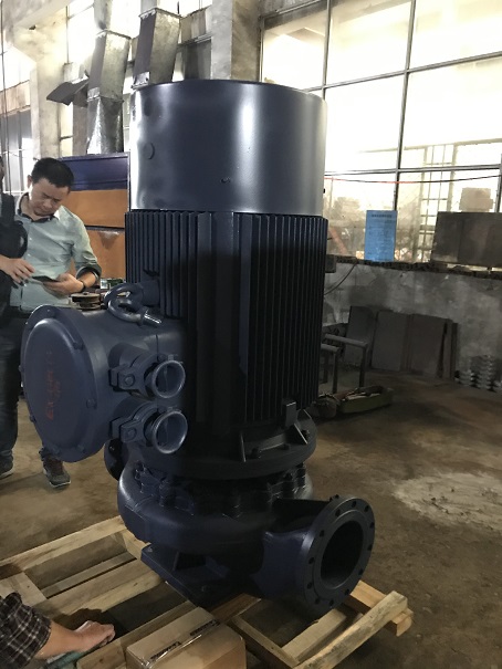 ISG200-500(I)配132KW-4江蘇大中防爆電機丹(dān)東克隆機封定製立式管道離心(xīn)泵(bèng)出廠(chǎng) 流量(liàng)400立方 揚程80米(mǐ) 進出口徑200MM 電壓380V 50HZ 客戶到廠驗收後,發貨.