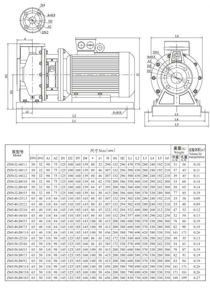 ZS型不鏽鋼(gāng)臥式單(dān)級離心泵(安裝尺寸(cùn))