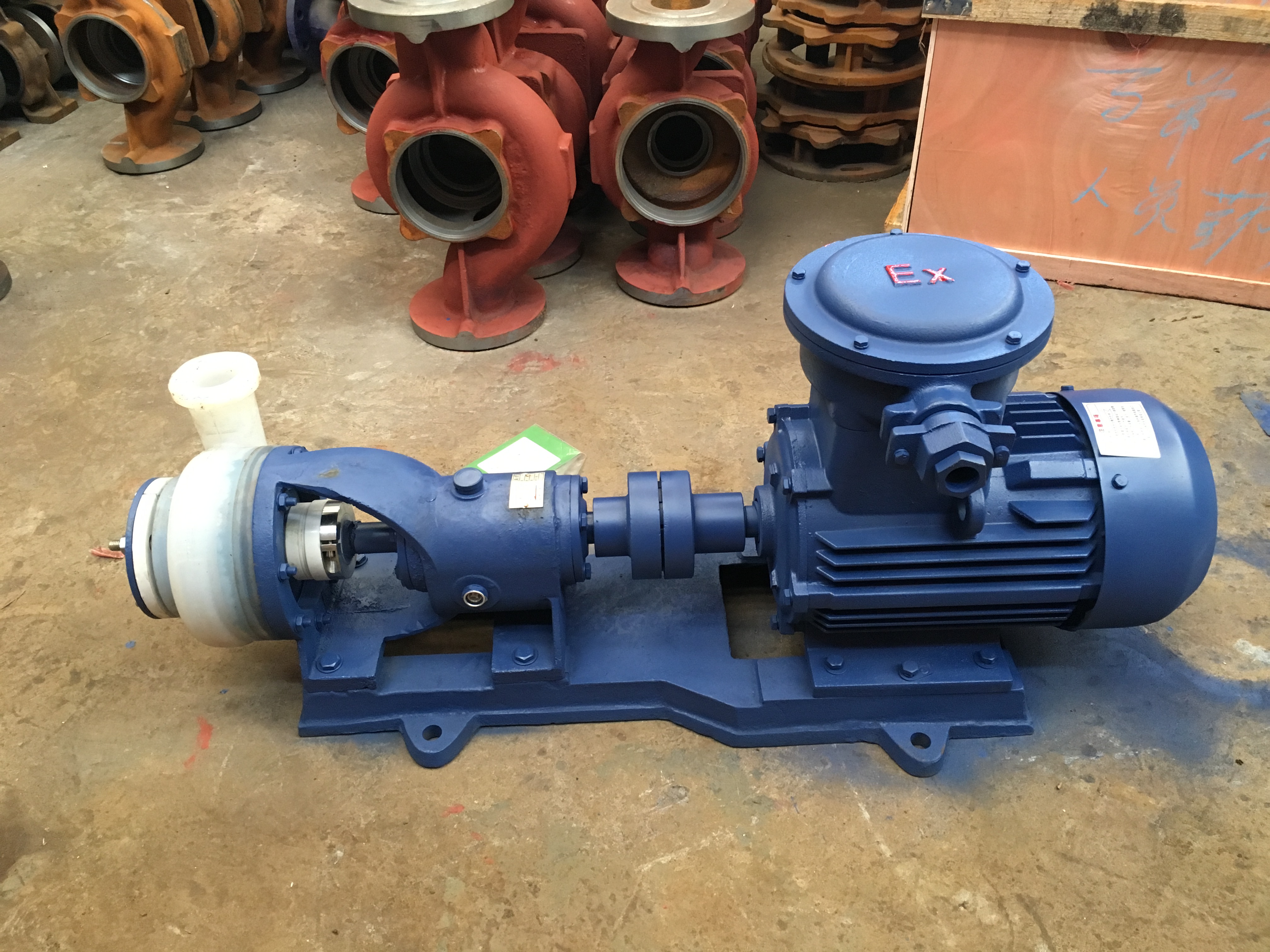 是一種離心式化工泵,其泵頭全部采用氟塑(sù)料模製而成,主(zhǔ)要材料是高分子(zǐ)材料、F26材質、F46材質 、氟塑料合(hé)金(jīn)材質的。因材質不同價格也誤差比較大。此類泵一般用於進出管道口徑要求相對較小,流量揚程要求較(jiào)低的工礦中(zhōng)輸送化學(xué)流體。因泵頭(tóu)全部采用氟塑料製造(zào),因(yīn)此機械強度相對比較弱,易開裂老化,在維修時必須拆卸泵的進(jìn)出口管道。否則很容易在維修(xiū)安裝過程中因外(wài)力,管道重(chóng)力而損壞泵體.