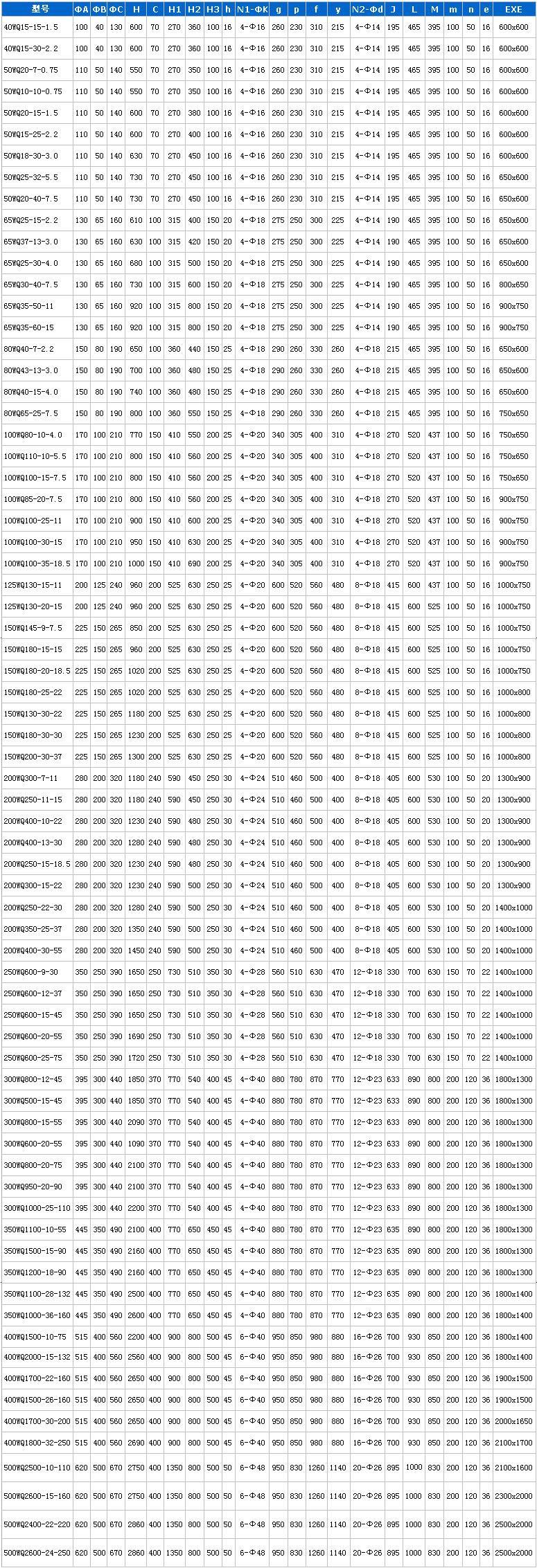 WQ固定潛水式無堵塞排汙(wū)泵安裝尺寸表:
