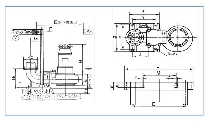 WQ固定潛水式無(wú)堵塞排汙(wū)泵安裝尺寸圖: