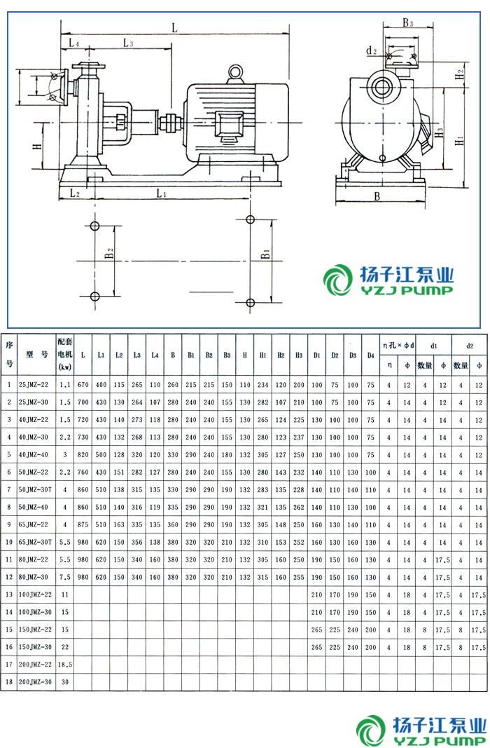 JMZ型不鏽鋼自吸泵酒泵(安裝尺寸)