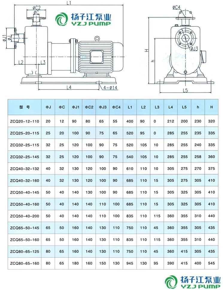 ZCQ型自吸式磁力(lì)泵(安裝尺寸)