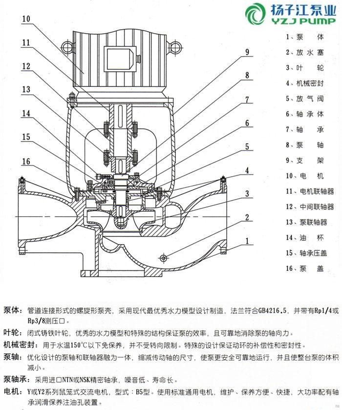 ISGB型便拆立式管道(dào)離心泵結構圖:
