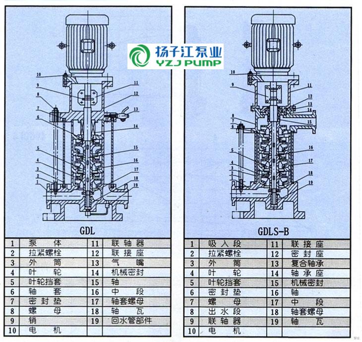 GDL型立式多級管(guǎn)道離心泵(結構圖)