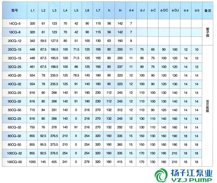 二、CQ型磁力驅動泵(bèng)安裝尺寸表:
