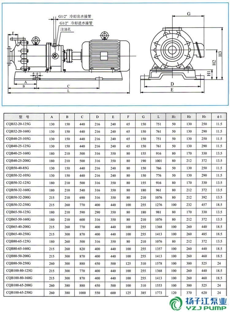 CQB-G係列(liè)高溫磁力驅動離心泵(bèng)(安裝尺寸)