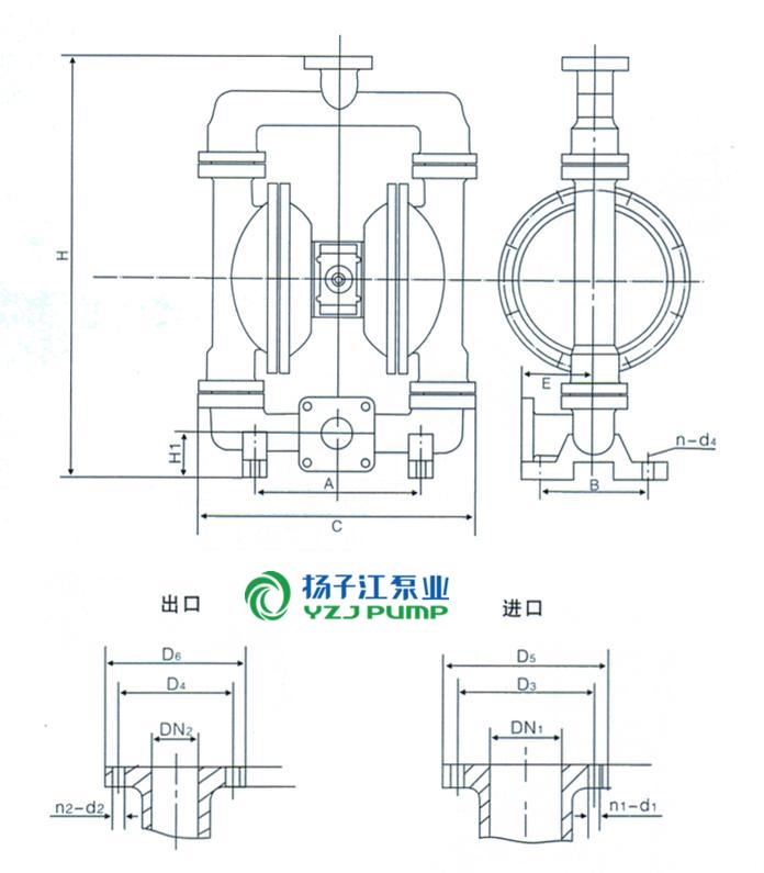 QBY係列氣動(dòng)隔膜泵(安裝尺寸)