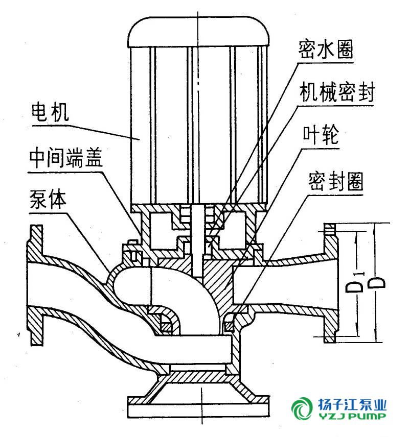 GW型管道式無堵(dǔ)塞排汙泵 (結構圖)