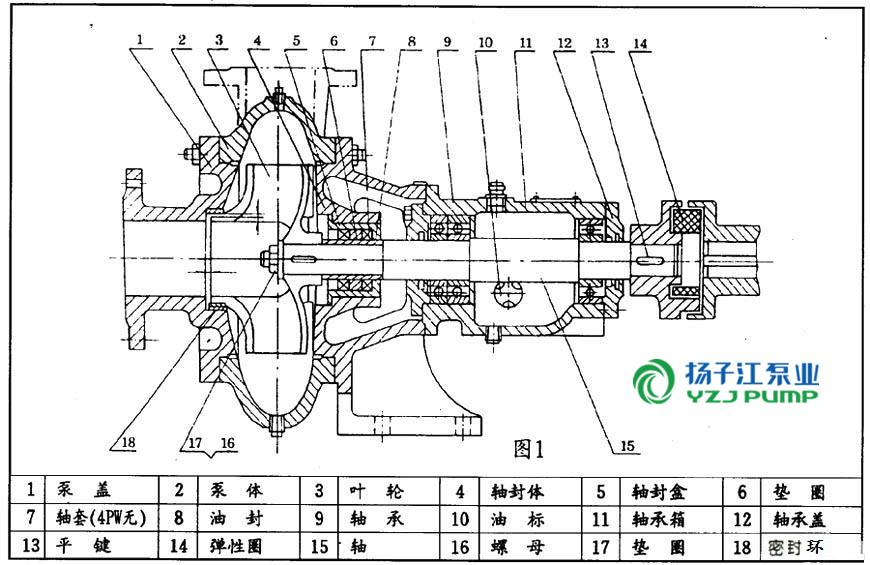 本型泵主要由:泵蓋(1),泵(bèng)體(2),葉輪(3),軸(15),軸封(fēng)體(4),軸承箱(11))及聯軸(zhóu)器部件等組成〈見(jiàn)圖1:結構圖〉