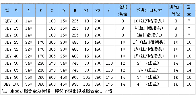 QBY型氣動隔(gé)膜泵(bèng)外形安裝尺寸表:
