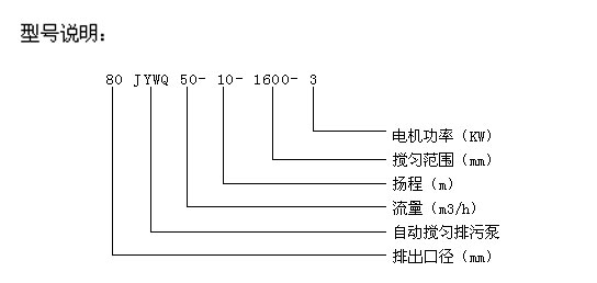 二、JYWQ型係列自動攪勻(yún)潛水排汙泵型號說明