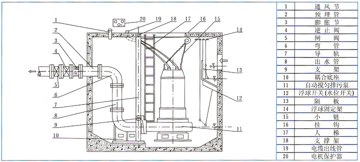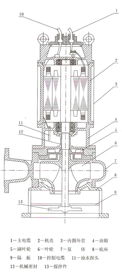 JYWQ型係列自動攪(jiǎo)勻排汙泵結構示意圖及說明