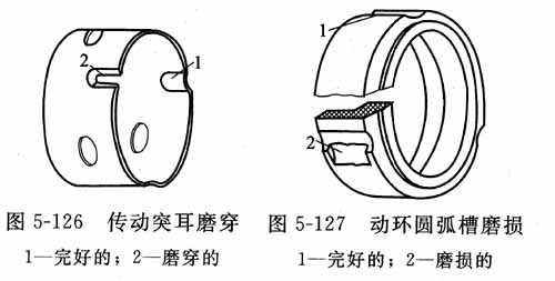 與傳(chuán)動(dòng)座突(tū)耳接觸的動環圓弧槽也產生相應的磨損,見圖(tú)5-127,原因同上。