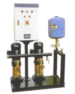 ·  主泵組  供水主泵組主要由DL型立式多級離心泵GDL型立式多級管道離心泵、ISG型立式管道離(lí)心泵或CDLF立式多級不鏽鋼衝壓(yā)離心泵和以槽鋼和鋼板焊接製成的鋼(gāng)製基礎構成,一般由3台同一型號(hào)的水泵組成。
