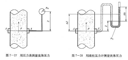 2)用液柱壓力計測量截麵A-A處的壓力,圖7-28所示