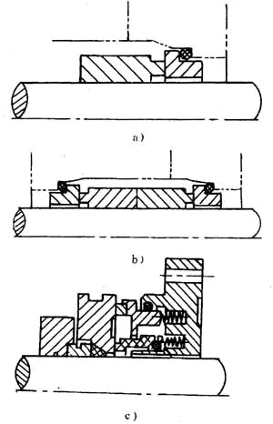 a)單端麵式;b)軸向雙端麵式;c)徑向雙端麵密封