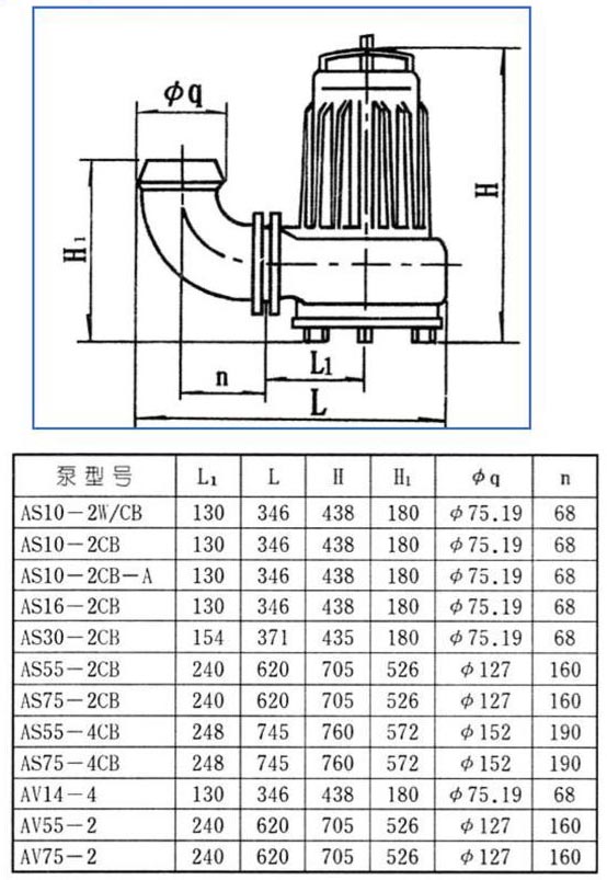 AS、AV型撕裂式潛水排汙泵外形尺寸