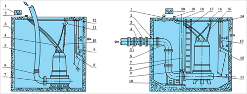 3、膨脹節 11、潛汙泵 19、電纜出線管
