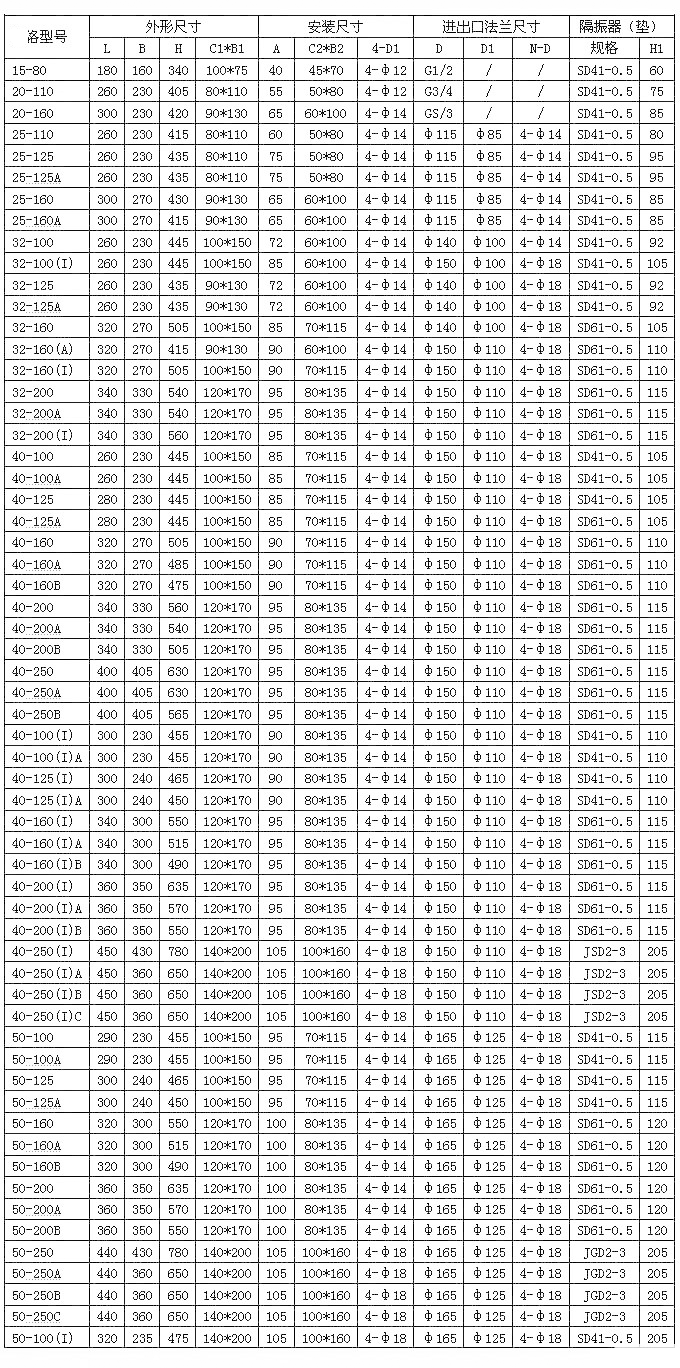 注:單級單吸管道清水離心泵參數立式泵與臥式泵相(xiàng)同
