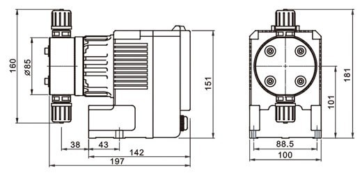 為確保有效操作,安裝時計(jì)量泵進出口必須保持豎直。