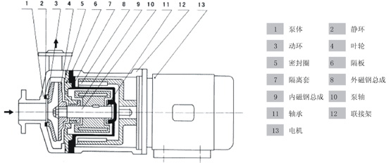 CQF型工程塑料磁力(lì)泵結構圖