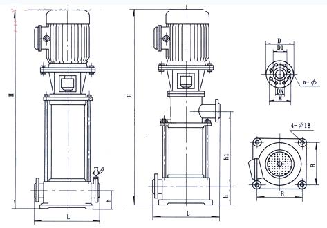 GDLF型立式不鏽鋼多級離心泵安裝尺寸圖